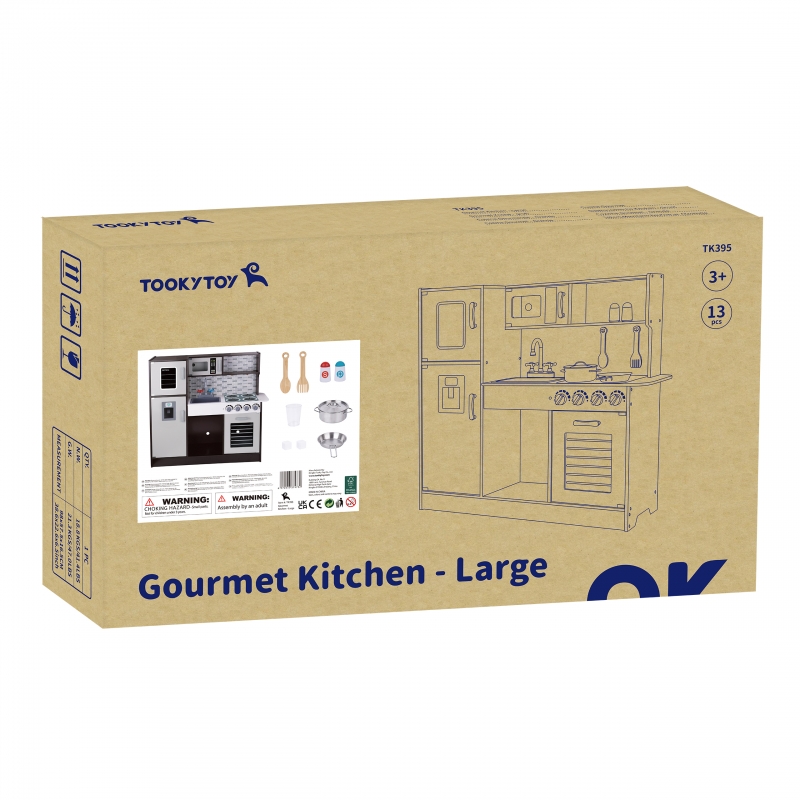 Drewniana nowoczesna kuchnia od Tooky Toy to ponadczasowa i ulubiona zabawka dla dzieci powyżej 3 roku życia, która przeniesie je w świat gotowania. Kuchnia kompletnie wyposażona w akcesoria i urządzenia, stymulujące prawdziwą kuchnię, co sprawia, że idealnie nadaje się do zabawy w odgrywanie ról, pozwalając dzieciom na naśladowanie codziennego życia dorosłych.