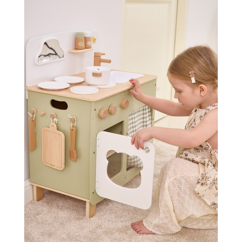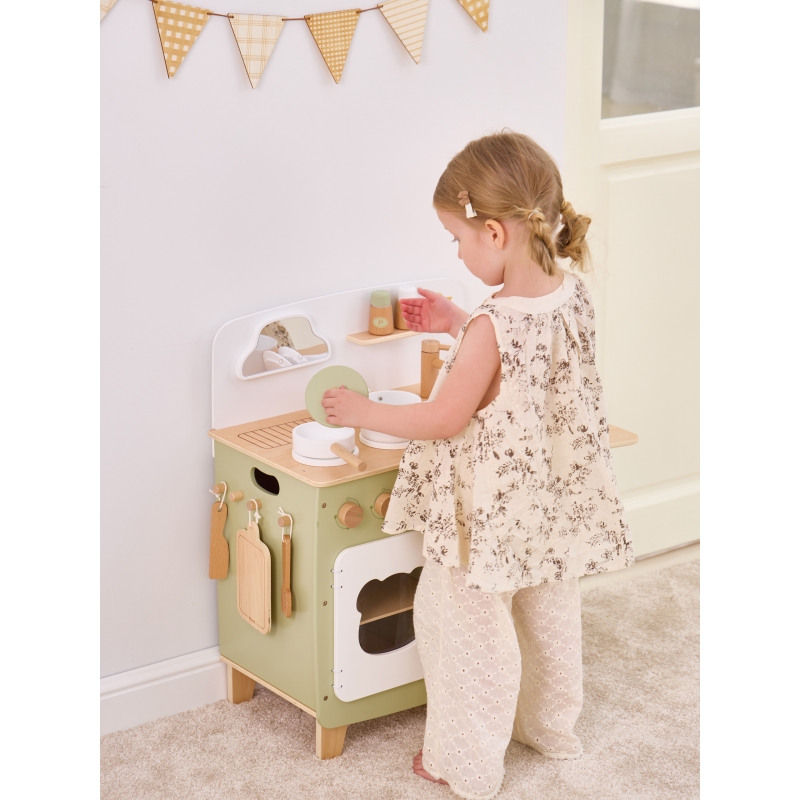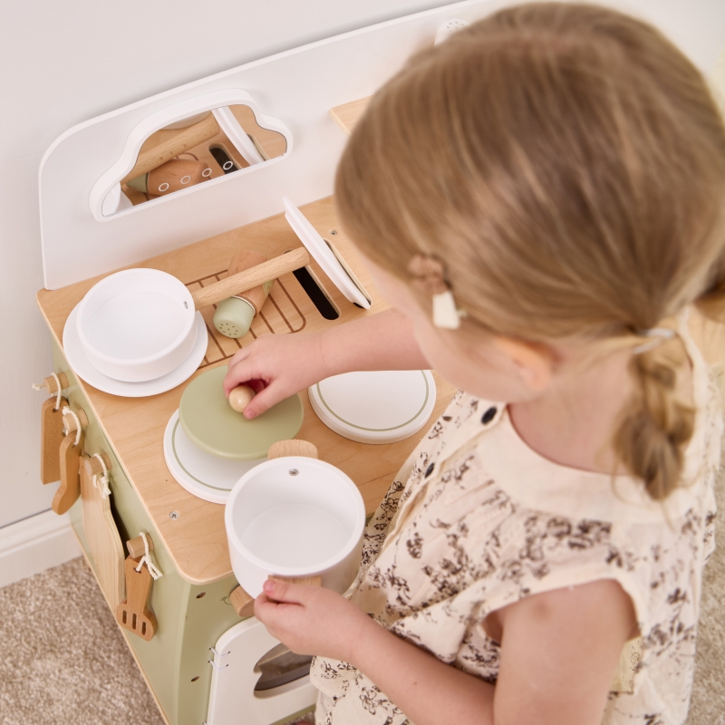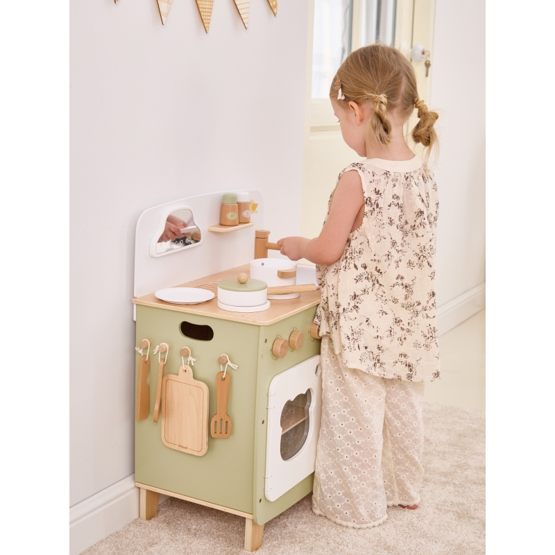 Urocza drewniana kuchnia od renomowanej marki Viga to świetny pomysł na dobrą i trwałą zabawkę dla twojego dziecka. Kuchnia została zaprojektowana tak, aby twoje dziecko czuło się jak prawdziwy szef kuchni! lustrzany okap, kuchenka oraz piekarnik, a to dopiero początek udogodnień, które posiada zabawka. Nauka korzystania z narzędzi kuchennych, kreatywne myślenie i wyobraźnia dzieci podczas zabawy są doskonale pobudzone.