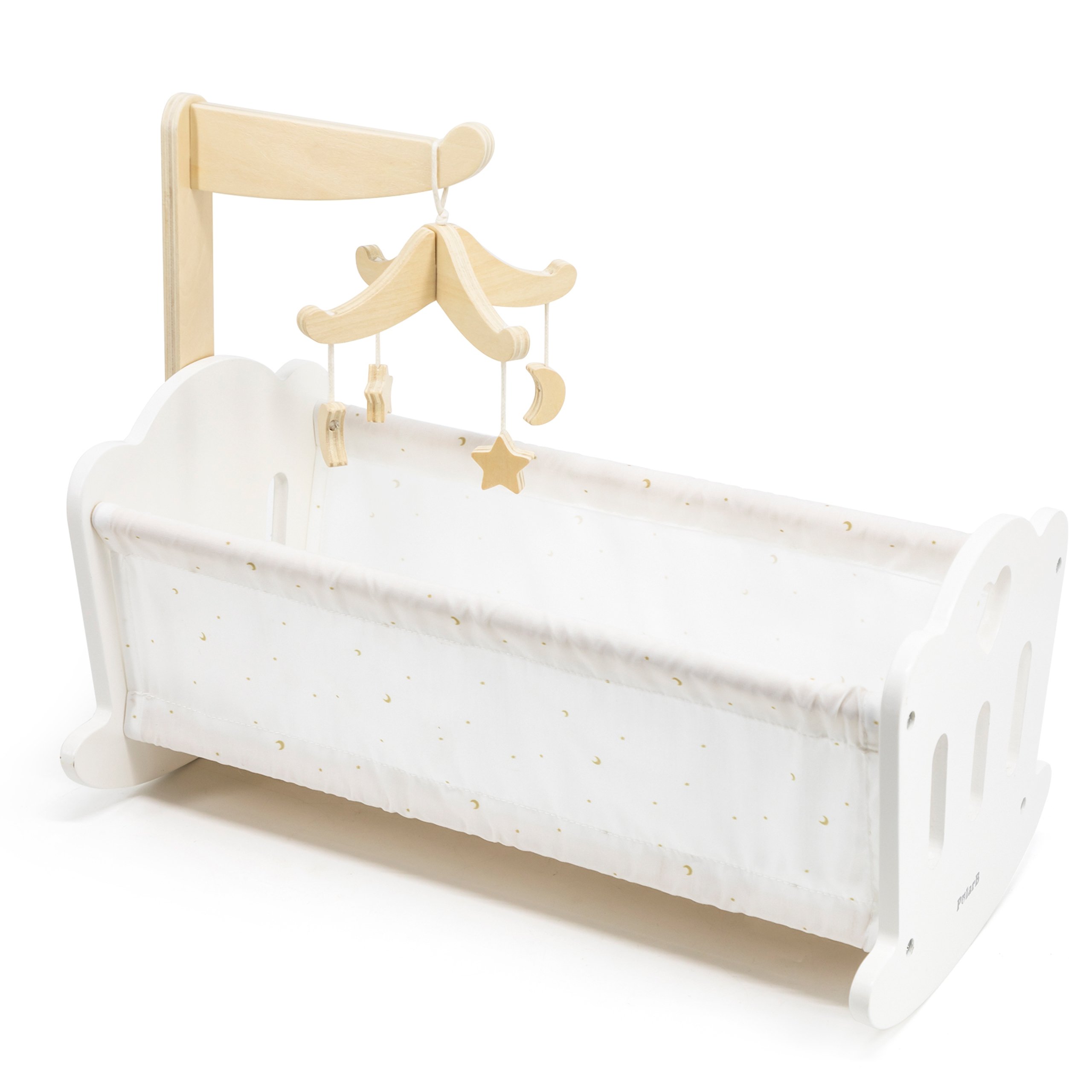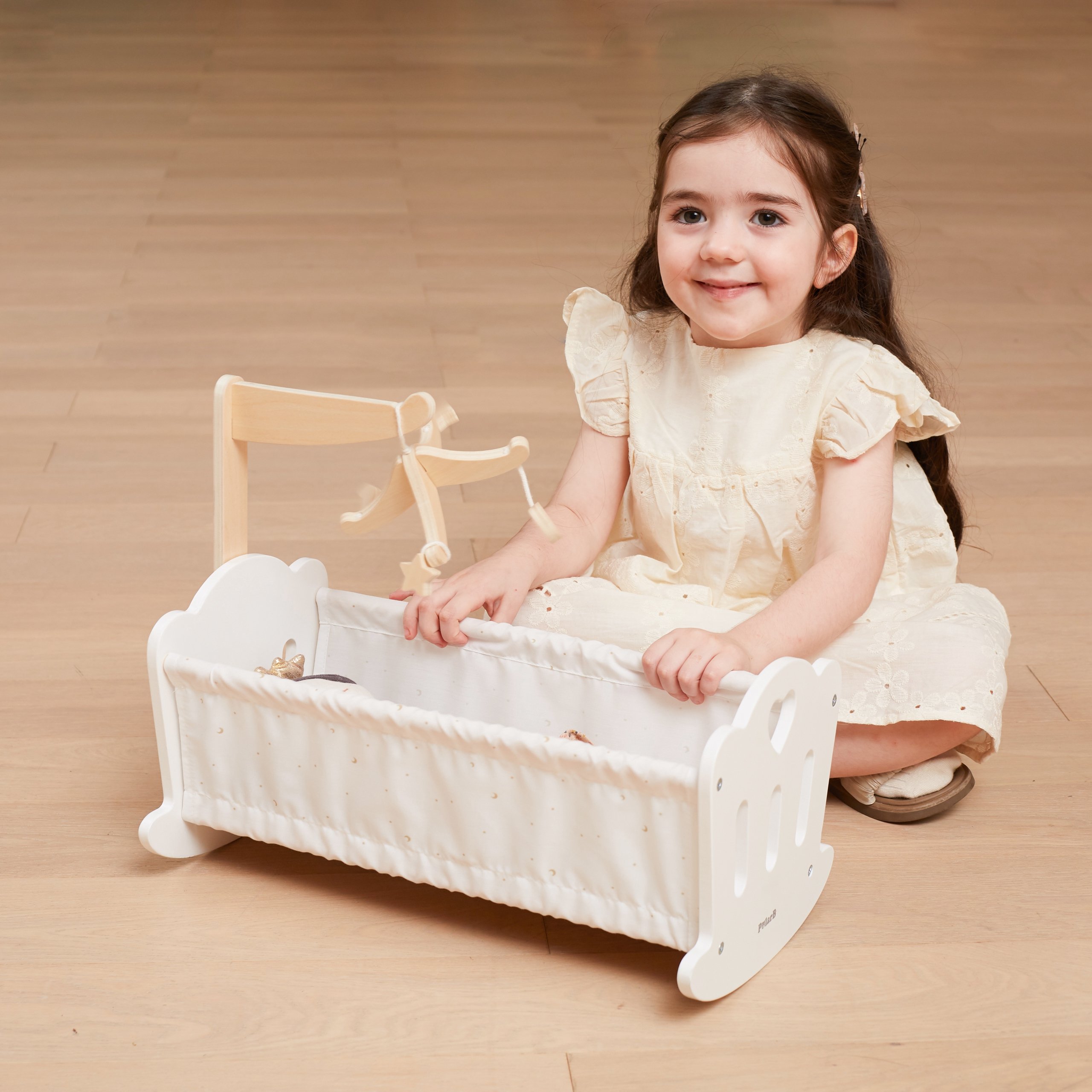 Kołysanie usypia lalkę, a drewniana kołyska dla lalek z serii PolarB VIGA tworzy przytulny „pokój” w miniaturze. Starannie wykonane łóżeczko dla lalek ma miękki komplet pościeli z motywem gwiazd i księżyca oraz uroczy mobil nad łóżeczkiem, dzięki czemu zabawa w opiekę nabiera realizmu. Gładkie krawędzie i solidne drewno dbają o komfort codziennego kołysania, a format dopasowany do lalek do 38 cm ułatwia dopasowanie ulubionej przytulanki. To estetyczna, trwała baza do domowego kącika „nursery”, która sprzyja spokojnym rytuałom przed snem i dłuższej, wyciszającej zabawie.