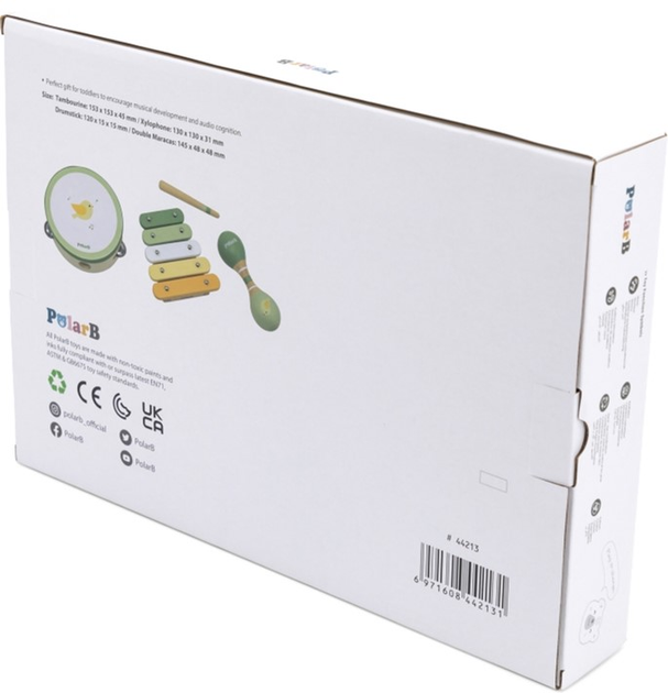 - w zestawie 3 instrumenty: tamburyn, podwójne marakasy i ksylofon