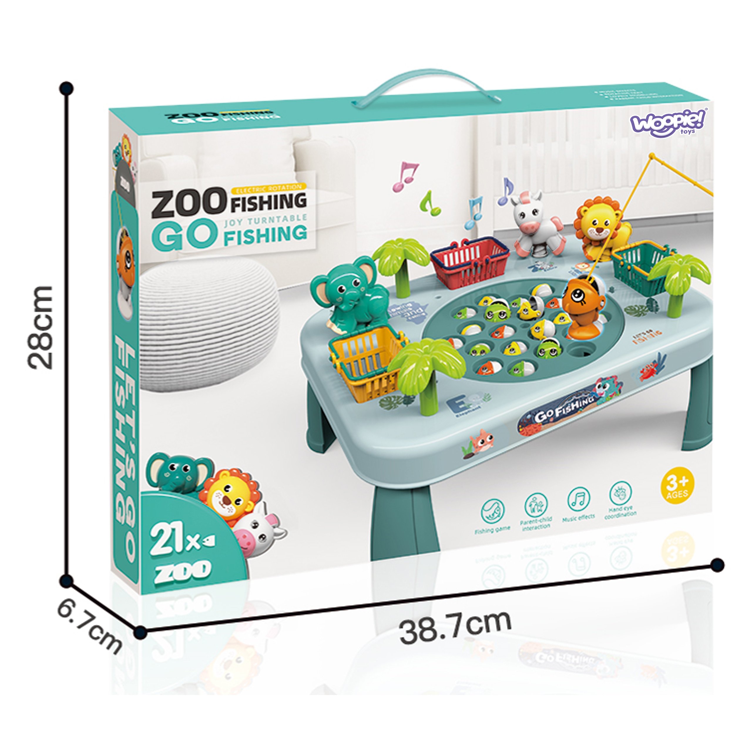 Interaktywny stolik WOOPIE Gra zręcznościowa łowienie ryb zamienia zwykłą zabawę w emocjonujący rodzinny turniej. Kolorowa plansza z poruszającymi się rybkami zachęca do szybkich reakcji, a boczne koszyczki na złowione rybki pozwalają zliczać punkty i wprowadzać element zdrowej rywalizacji. Dodatkową atrakcją są wesołe melodie i efekty dźwiękowe, które podkręcają tempo rozgrywki, a urocze figurki zwierzątek i palmy tworzą przyjazną, wakacyjną scenerię. To świetny sposób na wspólną zabawę, który przy okazji ćwiczy precyzję ruchów i cierpliwość dziecka.