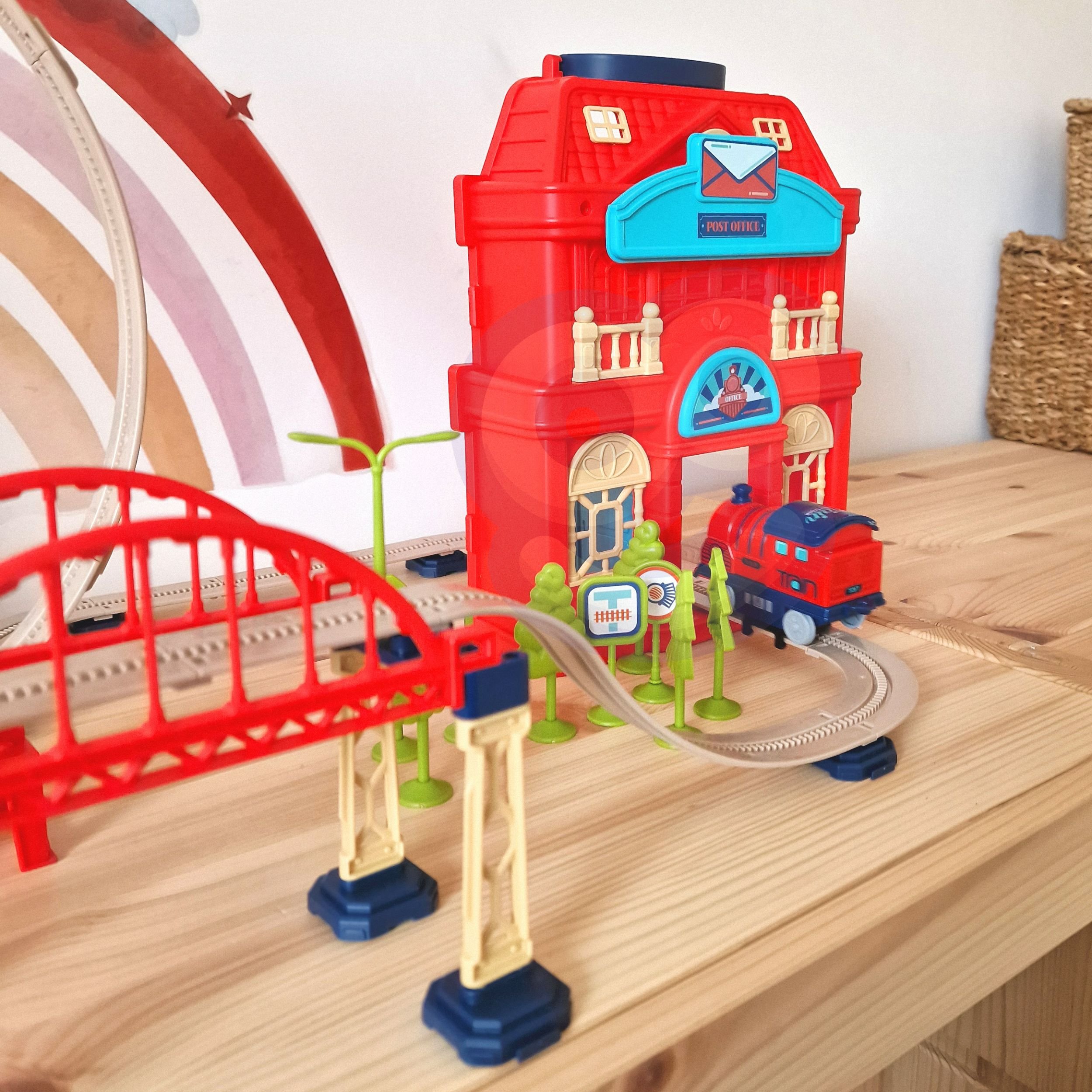 Kolejka elektryczna 2w1 składana w walizkę od marki Woopie to propozycja dla dzieci, które lubią zarówno układanie torów, jak i zabawę w małe miasteczko. Tor kolejowy o długości około 3,5 m z pętlą, wiaduktem i szlabanem pozwala tworzyć różne konfiguracje trasy, a lokomotywka z dźwiękiem dodaje realizmu każdemu przejazdowi. Praktyczna walizka pełniąca rolę dwóch budynków ułatwia przechowywanie zestawu i świetnie wygląda jako element scenerii. To kompaktowa, a jednocześnie rozbudowana kolejka elektryczna dla dzieci, która zapewni wiele godzin spokojnej, kreatywnej zabawy w domu.