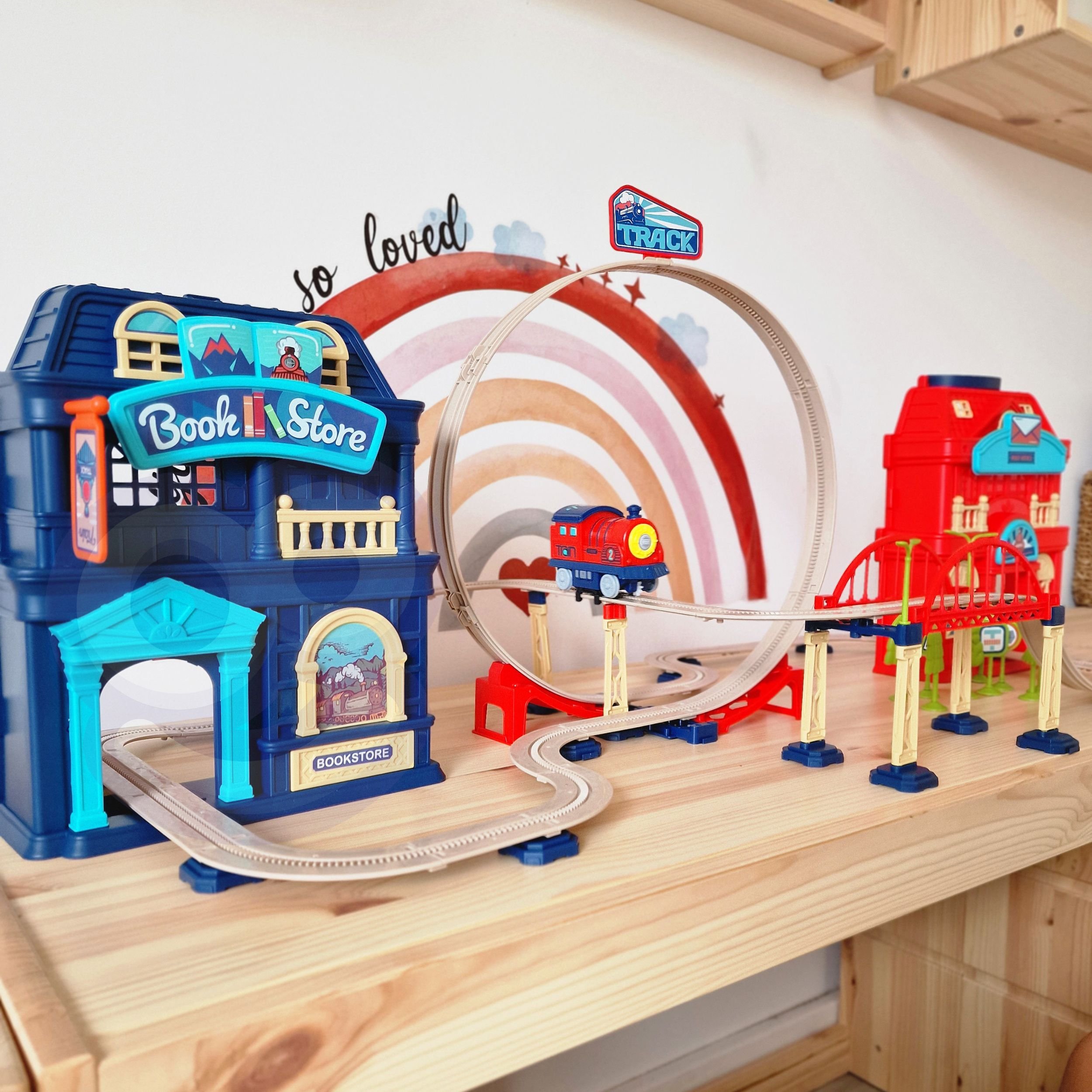 - tor kolejowy o długości ok. 3,5 m z pętlą, wiaduktem i szlabanem daje wiele możliwości układania trasy