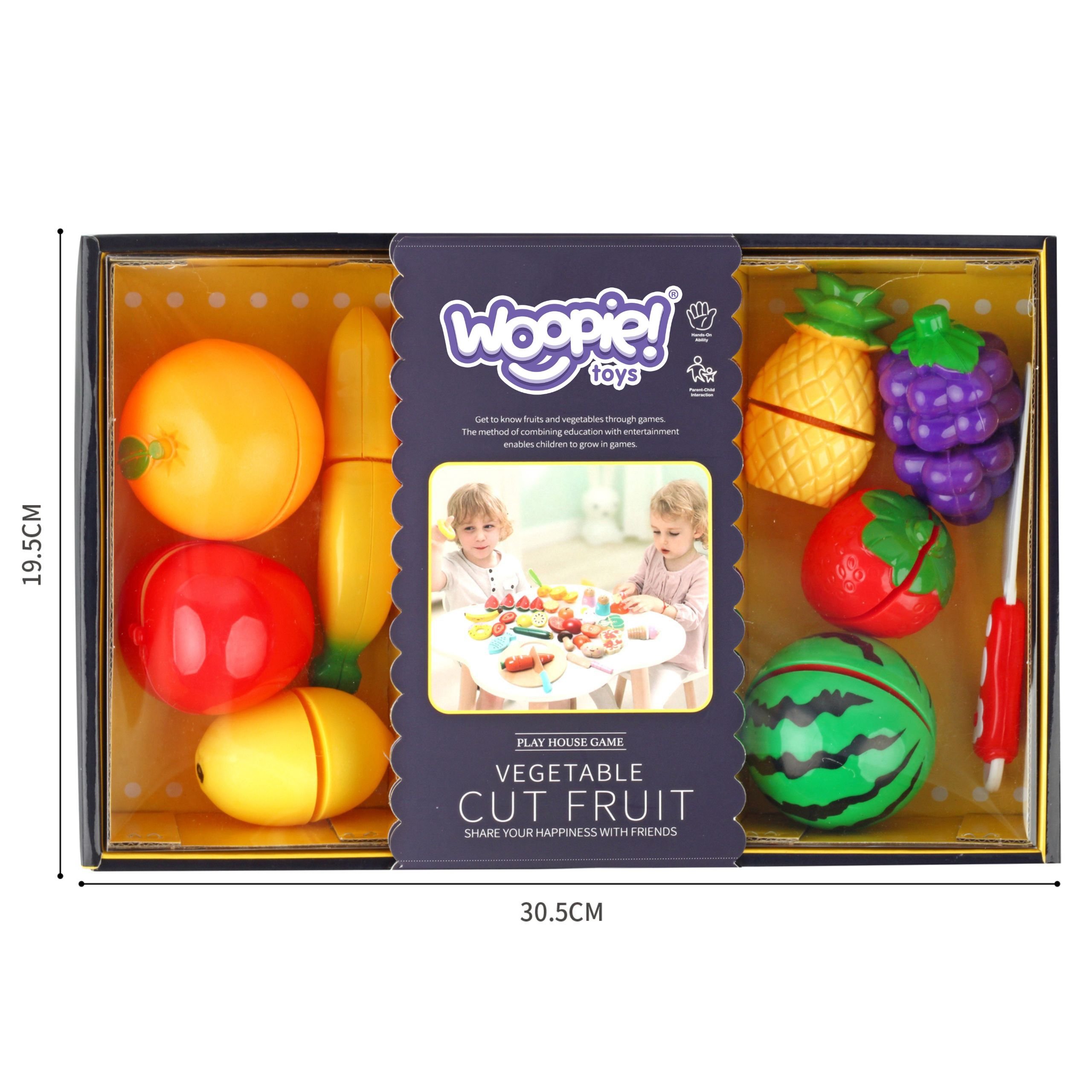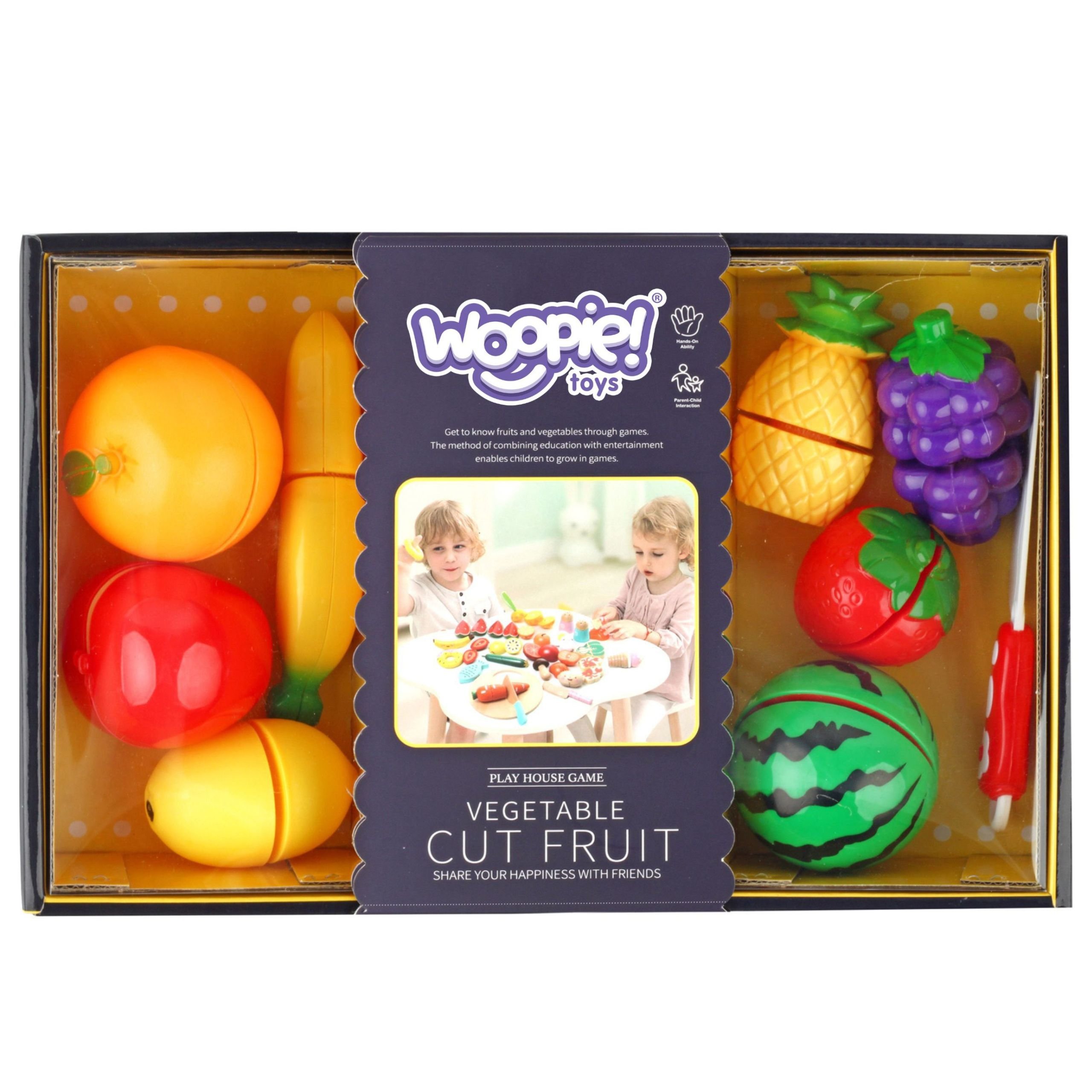 WOOPIE owoce do krojenia na rzepy deska nożyk to realistyczna zabawka do krojenia, która wspiera motorykę małą, precyzję ruchów i koordynację oko-ręka podczas bezpiecznej, codziennej zabawy w kuchnię; solidne elementy łączone na rzepy przyjemnie „klikają” przy krojeniu i składaniu, zachęcając do nauki kolorów, nazw owoców i pierwszych czynności kulinarnych, a zestaw z deską i nożykiem rozwija samodzielność oraz scenki z odgrywaniem ról; estetyczne wykonanie WOOPIE i ponadczasowy temat sprawiają, że to idealny pomysł na prezent dla miłośników kreatywnej zabawy bez ekranów i rodzinnych aktywności przy stole.