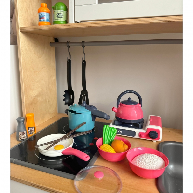 - produkty są wykonane z bezpiecznych materiałów, a ich szczegółowe odwzorowanie prawdziwych produktów spożywczych i narzędzi kuchennych gwarantuje trwałość i bezpieczeństwo