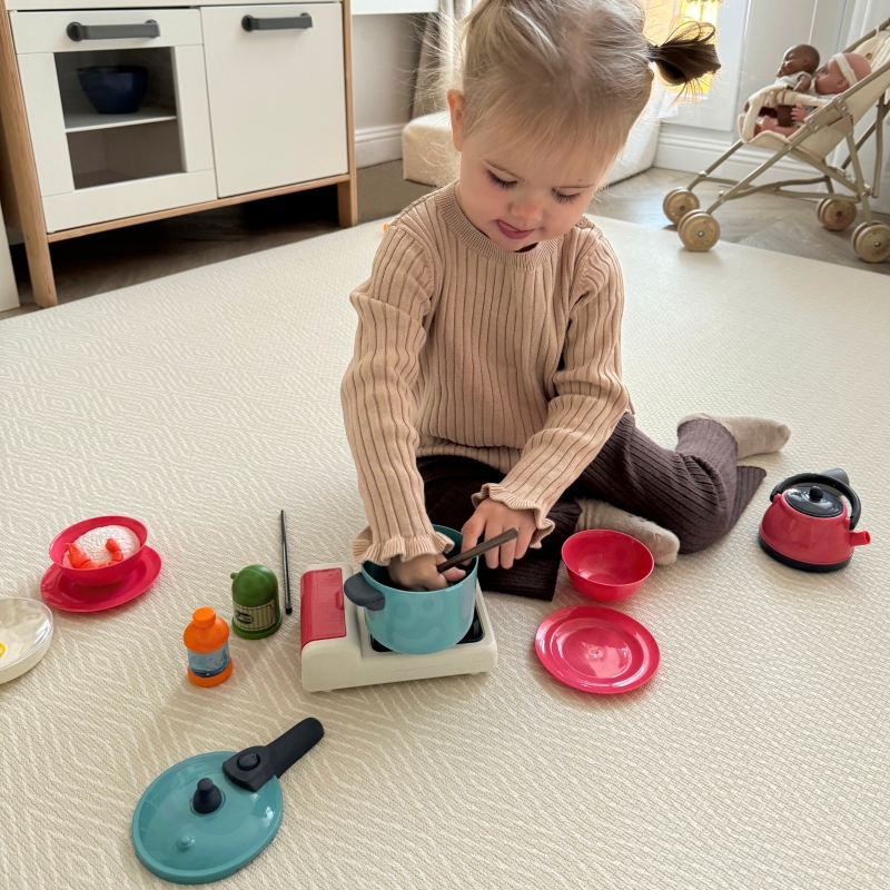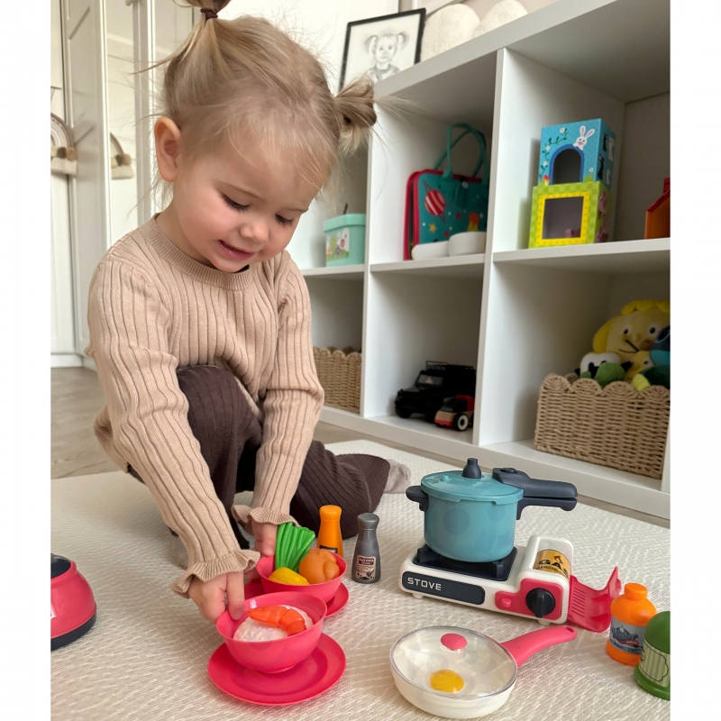 - zestawy kuchenne zachęcają do kreatywnej zabawy. Dzieci mogą udawać, że gotują, wymyślać własne przepisy i tworzyć wyimaginowane potrawy. To świetny sposób na rozwijanie wyobraźni